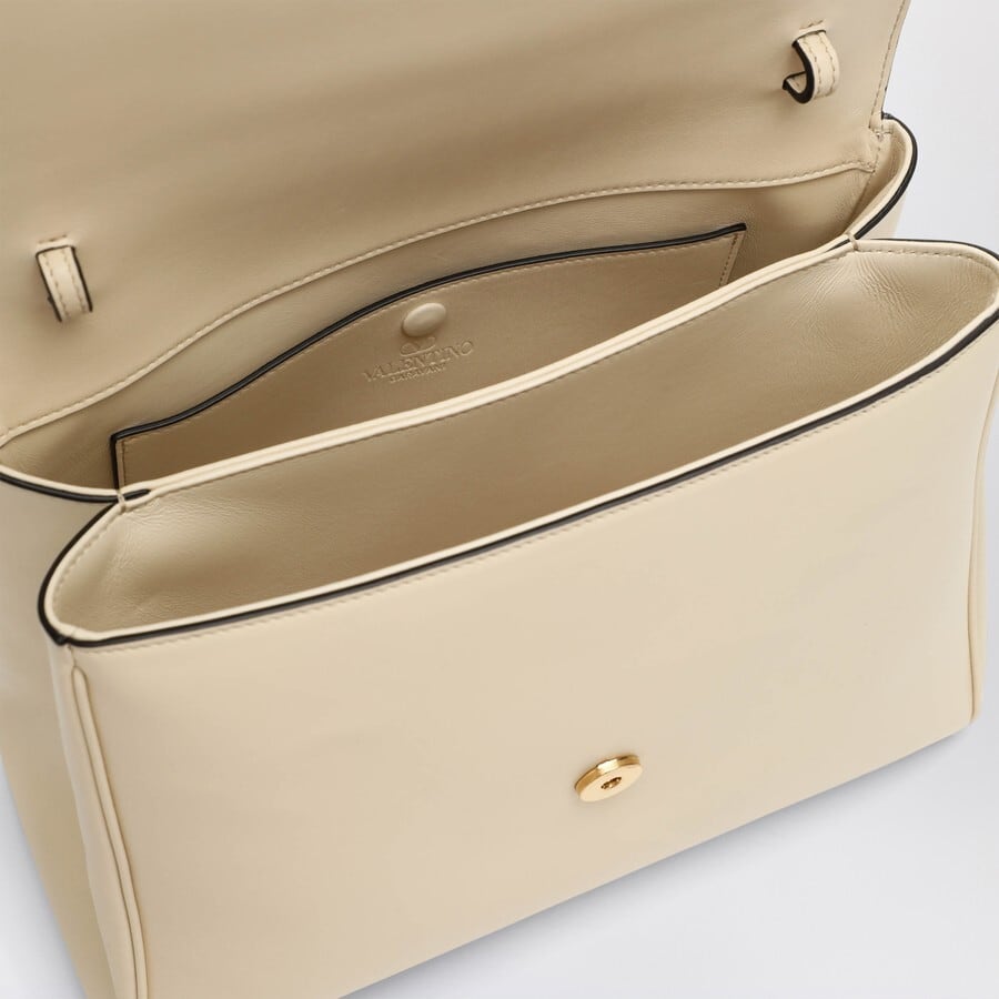 ヴァレンティノ ガラヴァーニのバターカラーのレザー ショルダーバッグは、調節可能で取り外し可能なショルダーストラップ、トップハンドル、マグネット留めのフロントフラップ、ゴールド仕上げのメタル Vlogo プレート、2 つのコンパートメント、マグネットボタン付きのスリップポケットが特徴です。